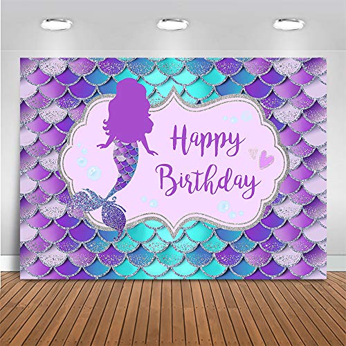 Popular Mocsicka Mermaid Birthday Backdrop Under The Sea Birthday Party Decoration for Girl Blue Purple Scales Photography Background (7x5ft (82x60 inch)) with Free Worldwide Shipping Now!